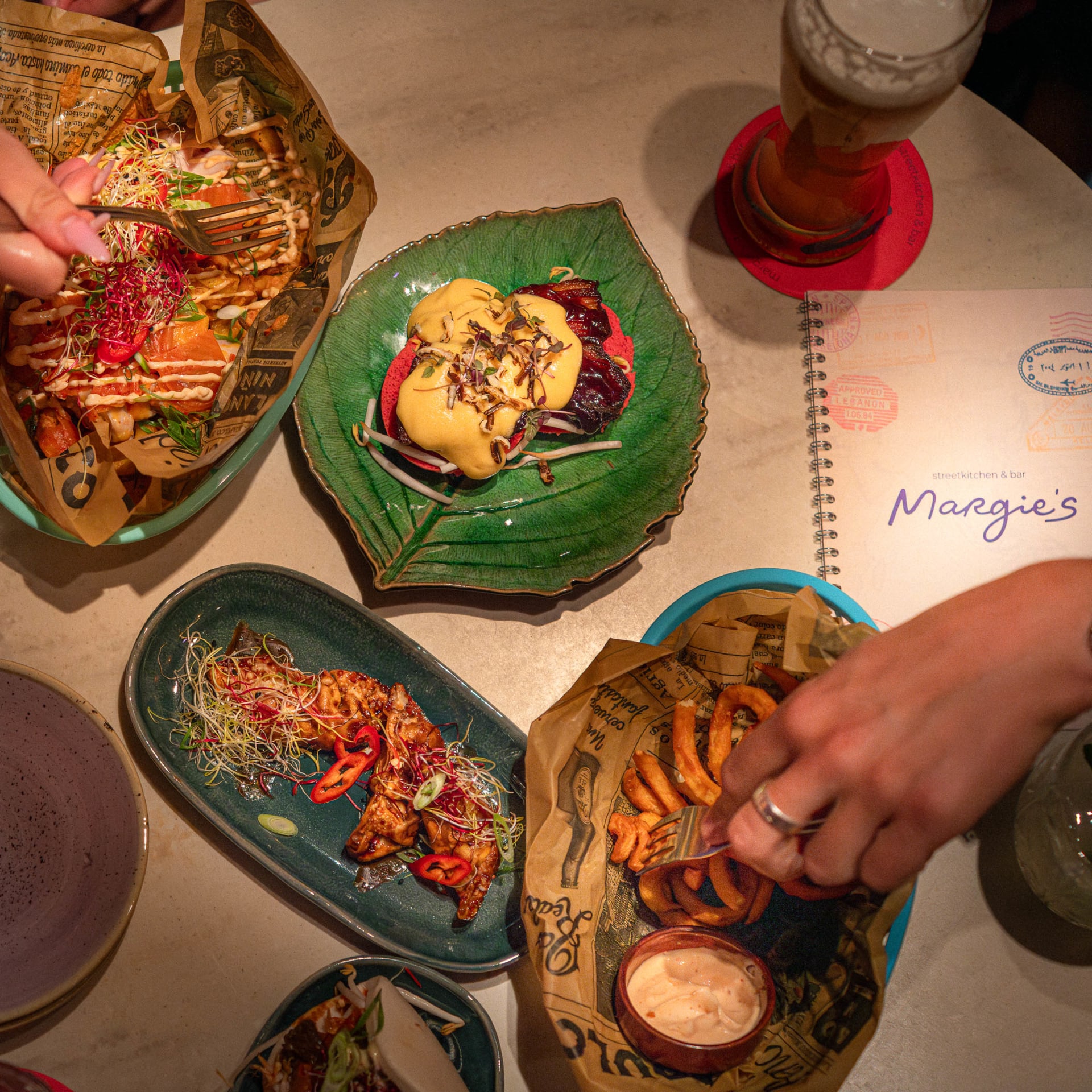 Midden in het culinaire hart van Utrecht vind je Margie’s, waar wereldse smaken en avontuurlijke sfeer samenkomen. Denk aan kruidige falafel, pittige saté en taco’s met een twist, geïnspireerd door Margie’s reizen als moderne nomade.